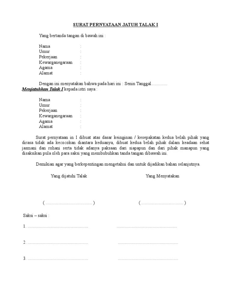 Contoh surat cerai nikah siri berikut yang mesti anda pahami sebagai salah satu syarat pisah secara sah dalam pernikahan siri.